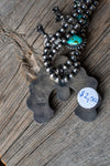 - Includes 12 turquoise stones set on smaller blossoms and a 10 stone statement naja piece